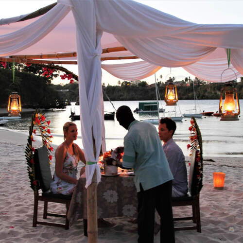 Enjoy delicious food with a touch of Kenyan influence. Our famous cuisine-offering is an expansive culinary celebration, complemented by the amazing atmosphere and wonderful views. Guests are encouraged to start their evening at the Main Bar to enjoy a refreshing drink before taking a seat for dinner. Dinner is regularly served on the beach too, and our Friday evening Beach BBQs are legendary!